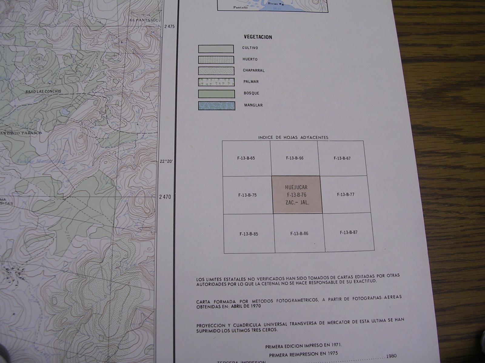 This folder contains a scanned images of a reference guide to maps in the 1:50,000 series that have been uploaded recently. This series of maps was produced in 1970's and 1980's. As has been previously discussed the border between the estados seems to be and who know what other inaccuracies might exist. Also included is the legend for the maps.
